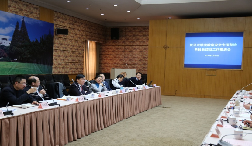 1月20日,复旦大学实验室安全专项整治阶段总结及工作推进会在逸夫科技楼二楼多功能厅召开。校长许宁生,党委副书记尹冬梅,副校长张志勇,校长助理、 组织部长周亚明,校长助理、财务处长苟燕楠出席会议,保卫、资产、基建、总务等相关职能部门正职负责人和理工医科实验室所属院系党政正职负责人参加会议。 会议由尹冬梅主持。