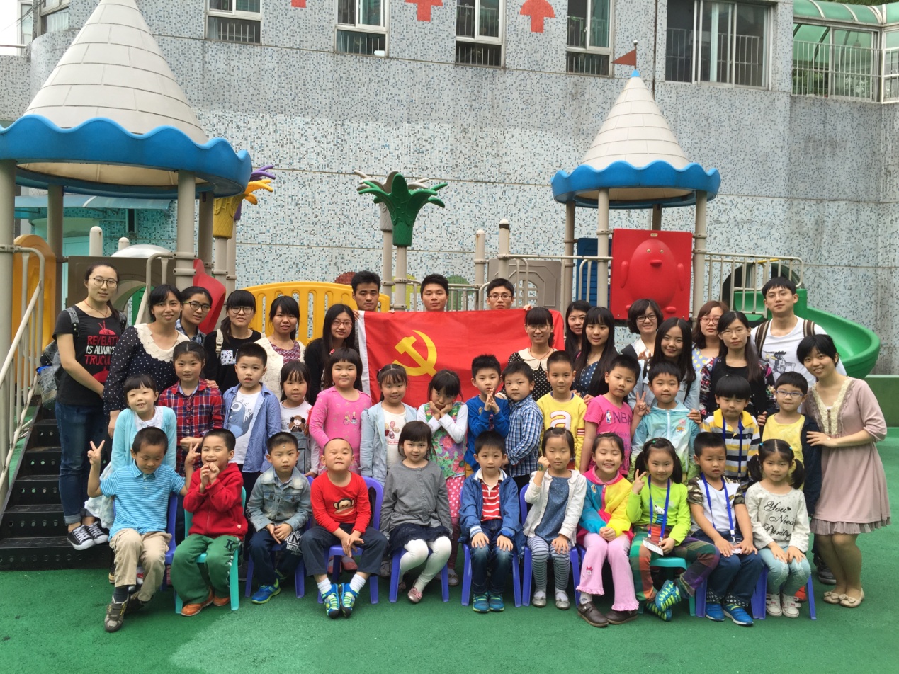 2015年5月29日9点整,基础医学院14级硕士党章小组的十六名入党积极分子在研究生党支部支委们的带领下前往复旦大学医学院幼儿园,顺利开展特色生活。此活动作为14级研究生党支部“青年梦”系列活动的一部分,旨在通过教唱红歌,在孩子们的幼儿时期就开始宣传爱党爱国的思想,也在教授过程中加强积极分子本身的党性学习。