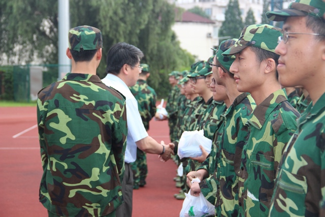 从7月11日—7月24日,我校2014级学生开始了为期14天的军训。了解到本次军训过程中,我院学生在内务卫生、队列、军体拳等各项训练中均有突出表现后,袁继鼎书记对同学们不怕吃苦、坚持训练的坚强意志表示肯定,向多日来辛苦带训的教官们表示衷心的感谢。袁书记强调:军训是对同学们进行国防教育、军事教育的第一步,经过这段时间的军事训练,同学们个个精神饱满、士气昂扬。军训对于医学生来说有着非比寻常的意义,参加军训的同学们是一个个铁血战士,将来踏上医疗卫生工作岗位,就是保卫全人类生命健康的白衣战士!希望同学们严守纪律,认真完成训练任务,继续保持高昂的斗志,以昂扬的精神风貌来完成接下来的训练任务。在未来的大学生活中,继续发扬吃苦耐劳和顽强拼搏的精神,保持高昂的爱国热情,努力成为保卫国家的栋梁之才。
