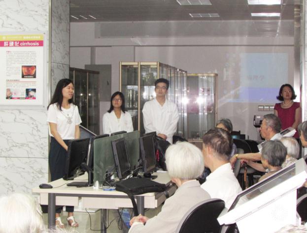 自今年5月至8月以来,病理系教师党员和研究生党员借助病理标本博物馆这一平台,先后举办了6次面向广大居民的疾病知识科普活动。到访参观的人员有徐汇区红十字会志愿者、枫林街道张家浜居委、四季园和平江街道的居民、两届复旦MBA班学员和医学院退休教职工,其中有古稀老人、有幼龄儿童、有为医学院奉献一生的教师、也有非医学专业的各界人士,受众面广,人数多达100余人,