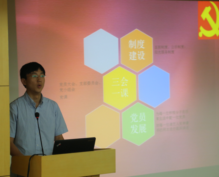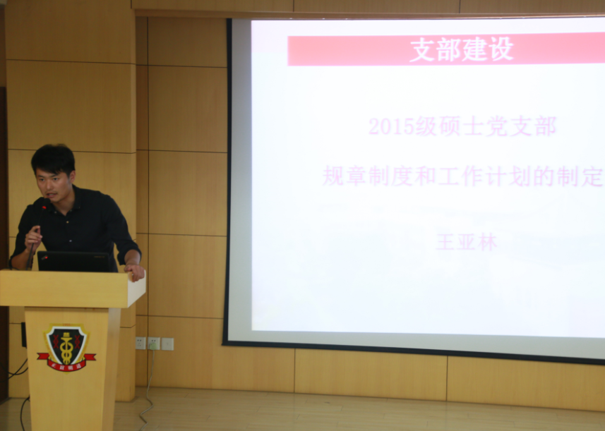 2014级硕士党支部书记杜铁帅同学介绍了2014级硕士党支部建设的基本情况。丰富多样的党建活动形式,富有上医传统的志愿服务项目,让在座的党员感叹14级党支部党建工作的创造力。