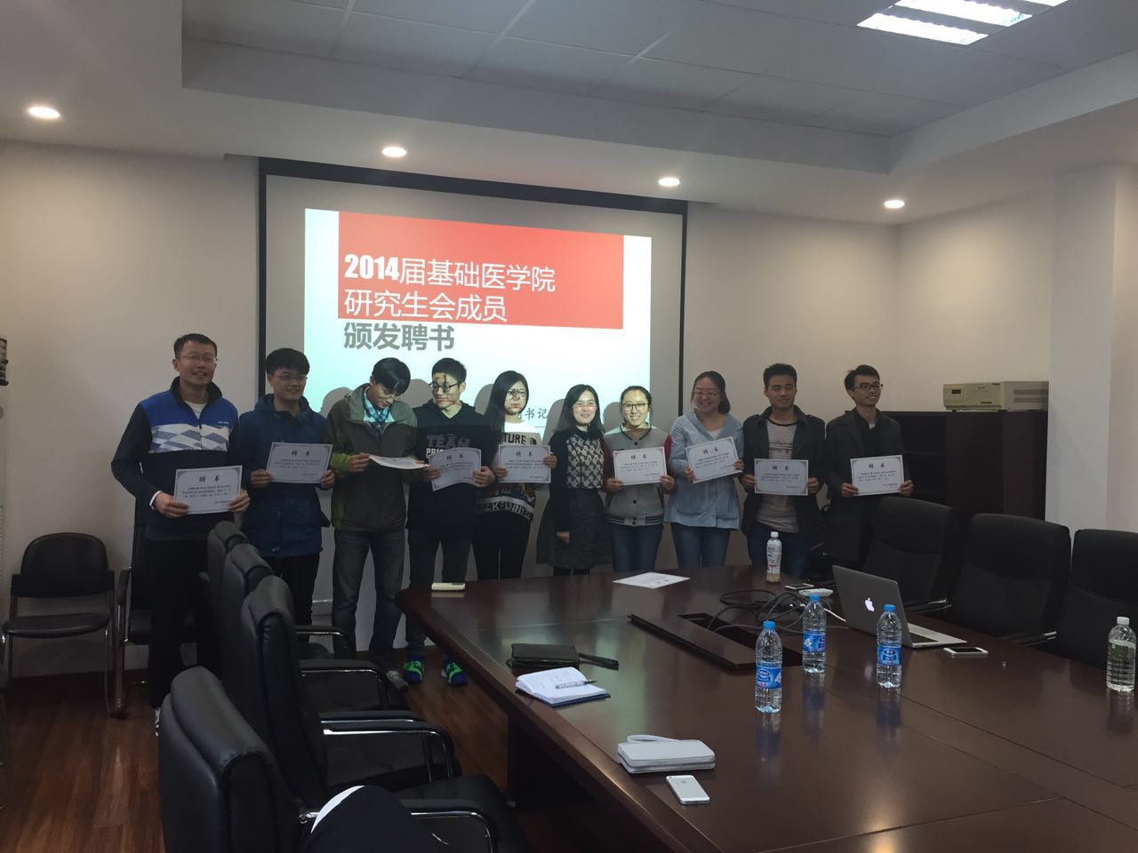 会议第二项由韩秀引老师为去年在研会辛勤付出的2014届研究生会成员颁发聘书,并合影留念。