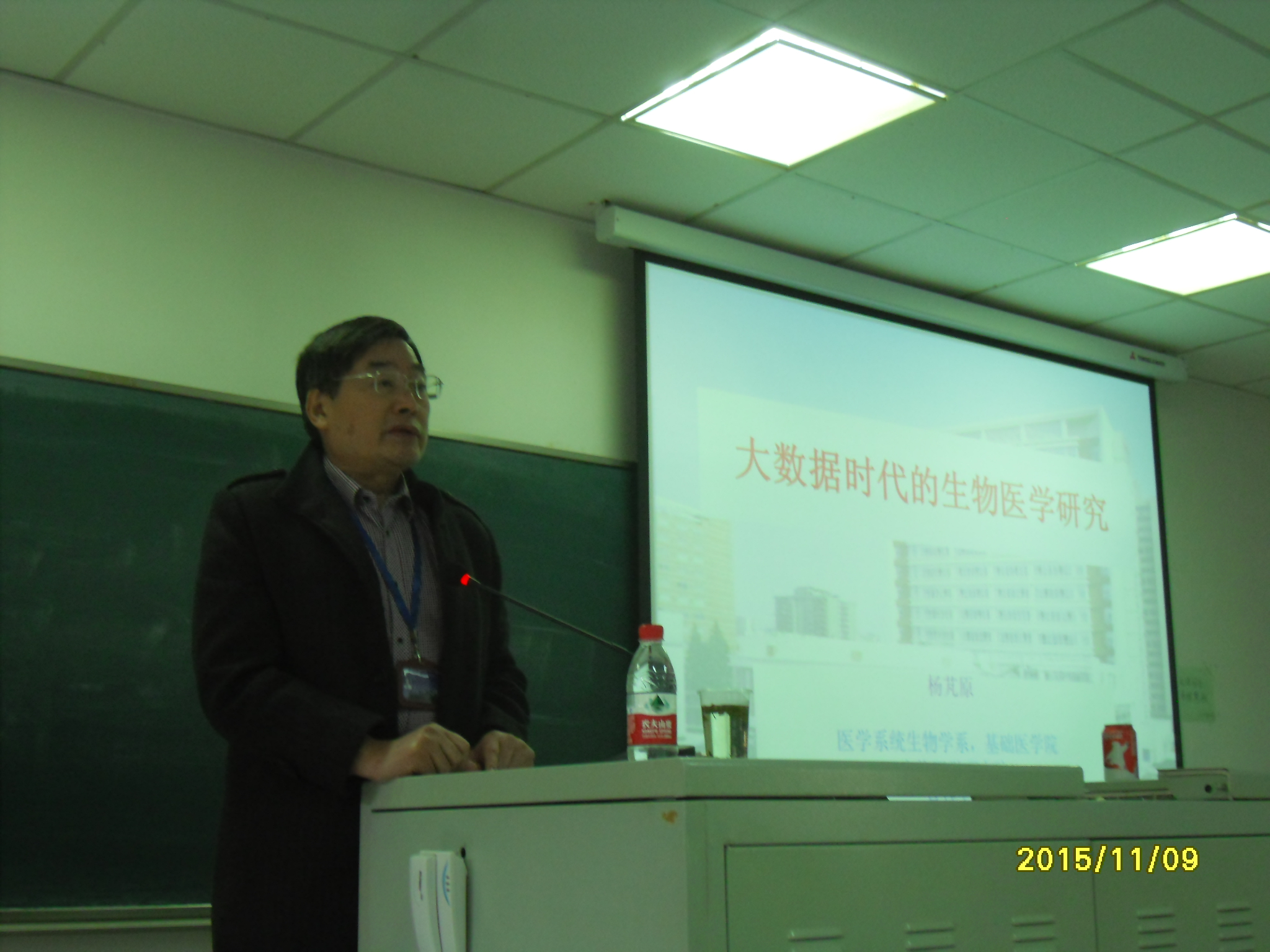 2015年11月9日下午13点30分,《科研论文的构思,撰写和发表》课程第四讲在F2201教室举行。复旦大学生物医学研究院常务副院长、九七三项目首席科学家杨芃原教授,以《大数据时代的生物医学研究》为题,为同学们讲解当今信息化技术的飞跃发展对生物医学事业的巨大推动,帮助大家答疑解惑。偌大的教室座无虚席,同学们纷纷提前在教室做好准备,等待着杨教授的到来。