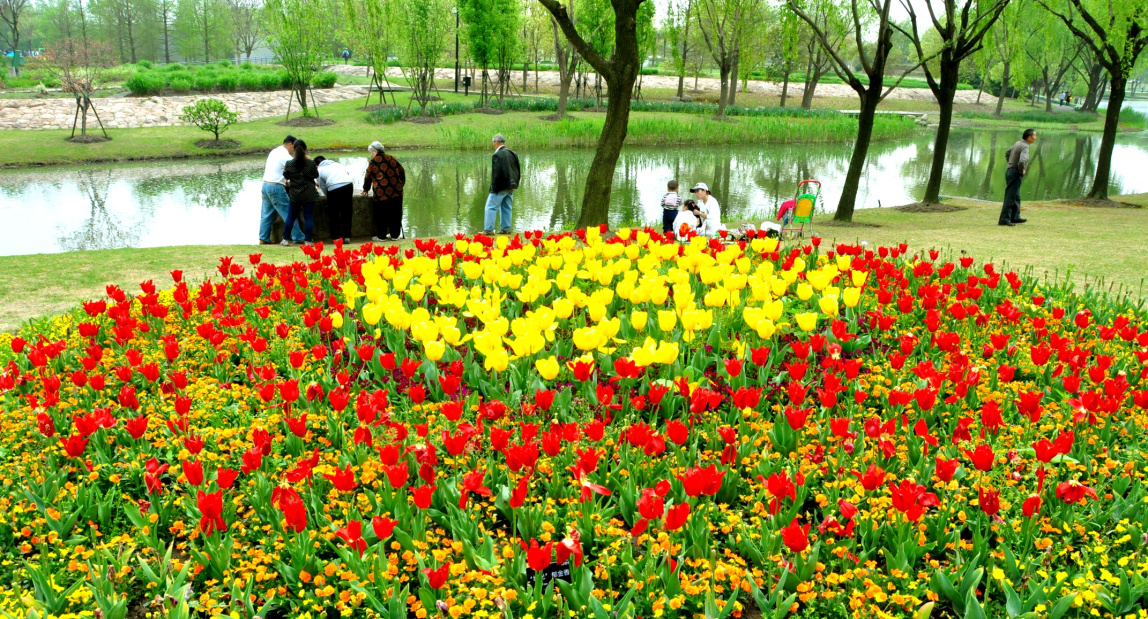 我们第二个目的是松江区辰山植物园。 辰山植物园是华东地区规模最大的植物园,也是集科研、科普和观赏游览于一体的综合性植物园。其核心展示区的温室展览是整个植物园的重要组成部分,由热带花果馆、沙生植物馆和珍奇植物馆组成。在展览区外有多个露天主题植物园如:湿生植物园、蕨类植物园、鸢尾园、睡莲科植物园、油料植物园、桂花园、梅园、芍药园等。空旷之处生长多种五彩缤纷的郁金香,红色、黄色、白色、黑色等…… 在辰山脚下有个矿坑花园,矿坑花园是开采建筑石材遗留下来的矿坑深潭,潭水清澈,宛如“镜湖”。游客可沿着曲折的山崖栈道,登上辰山。登高送目,整个园景尽收眼底。漫步在深潭上的浮桥,可见瀑布水帘悬挂于石壁,高至近百米;水面倒映着辰山,柳絮飞舞、怪石岩洞,煞是美妙。教师们享受着美景,乐在其中,流连忘返。