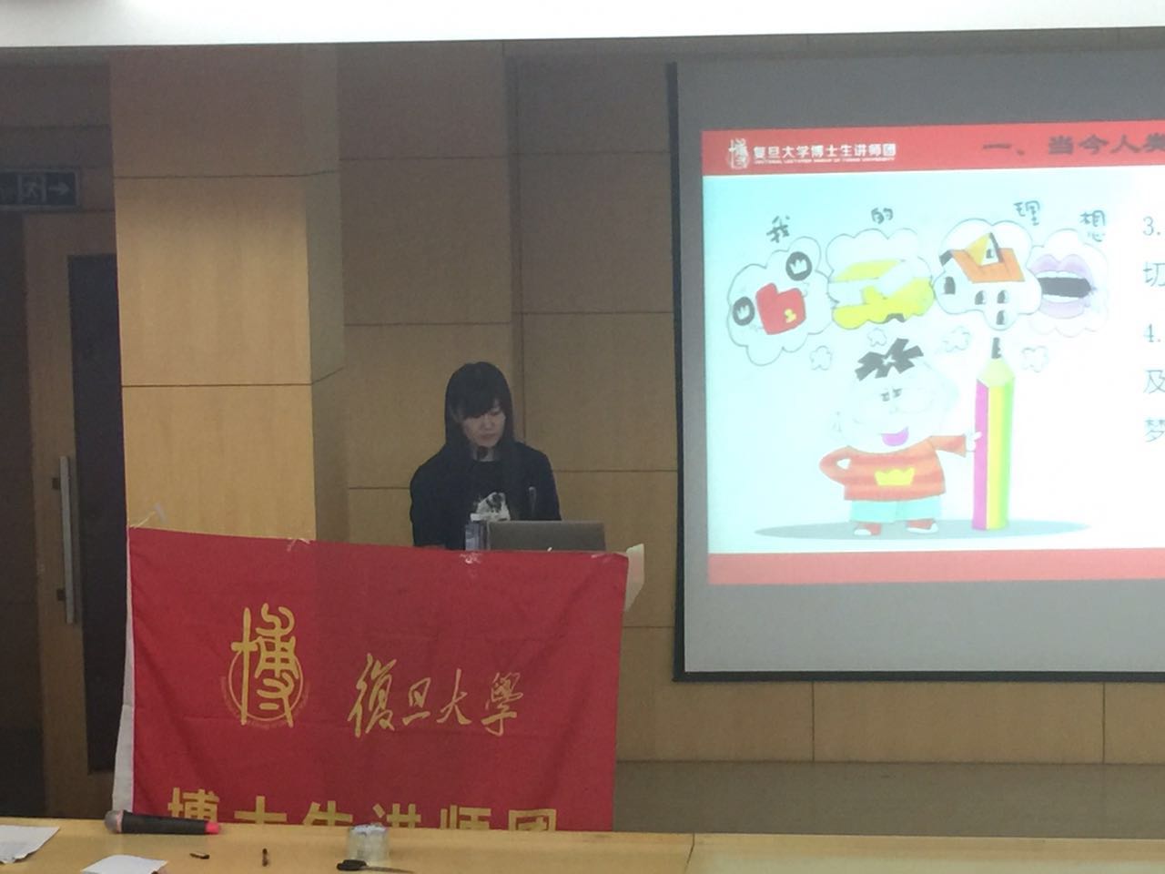 首先是来自复旦大学哲学学院的李健博士,向在座的党员同学们详尽地分析解说了中国道路的理论内涵,深挖总结出中国道路是一条理论之路、历史之路和实践之路,属于中国特色的理论创新之路。李健博士生动的语言和切实的生活事例帮助同学们理解抽象的理论知识,讲解过程深入浅出,党员们反响热烈。