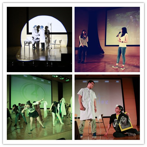之后是由2013级临八1班带来的情景剧歌曲串烧《我的大学生活》和由2015级临五2班、基法班带来的歌曲小演《医学生的大一生活》。表演围绕医学生日常生活学习展开,引起在场同学共鸣,获得阵阵掌声与喝彩。