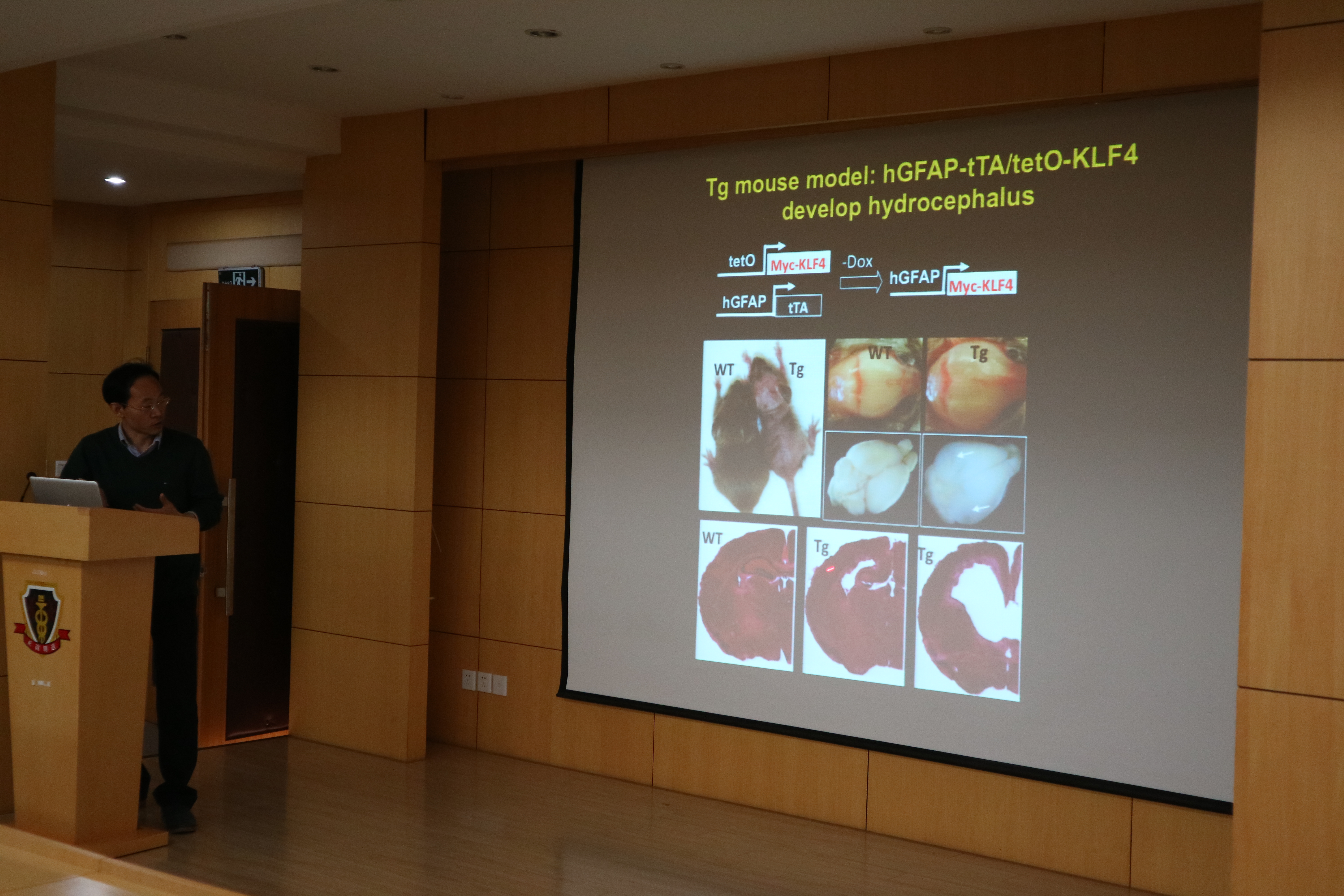 秦松老师介绍了神经干细胞与脑发育的密切联系,并以转录因子KLF4为例,通过细胞培养和转基因动物模型阐述了KLF4调控神经干细胞的分化以及脑的发育以及相关的分子机制。接着又阐明了KLF4调节轴突再生的机制。接下来又通过几张简明的图详细的阐述了神经损伤与再生的关系。以星型胶质细胞为例,深入浅出的解释了脑损伤后星型胶质细胞激活的机制以及体内细胞如何重新编程来促进神经再生。