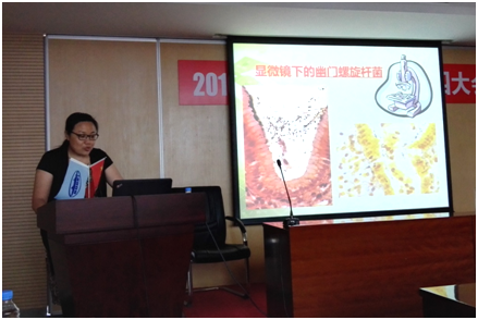 活动过程中,刘秀萍教授首先做了简短的发言,并介绍了病理学系和病理标本博物馆,还热情邀请设计院职工及家属来我校人体科学科普教育基地参观。随后,吴慧娟副教授科普了动脉粥样硬化的危险因素、发病机制、病理特点及防治,她的讲解图文并茂,还引用了电影《老泡儿》中主角六爷心血管疾病等故事例证疾病防控的重要性。朱荣副教授戏称幽门螺杆菌为“不可爱、易传播的细菌”,科普了与之相关的胃炎、胃溃疡和胃癌,还对如何解读胃镜活检病理报告单做了详细介绍。