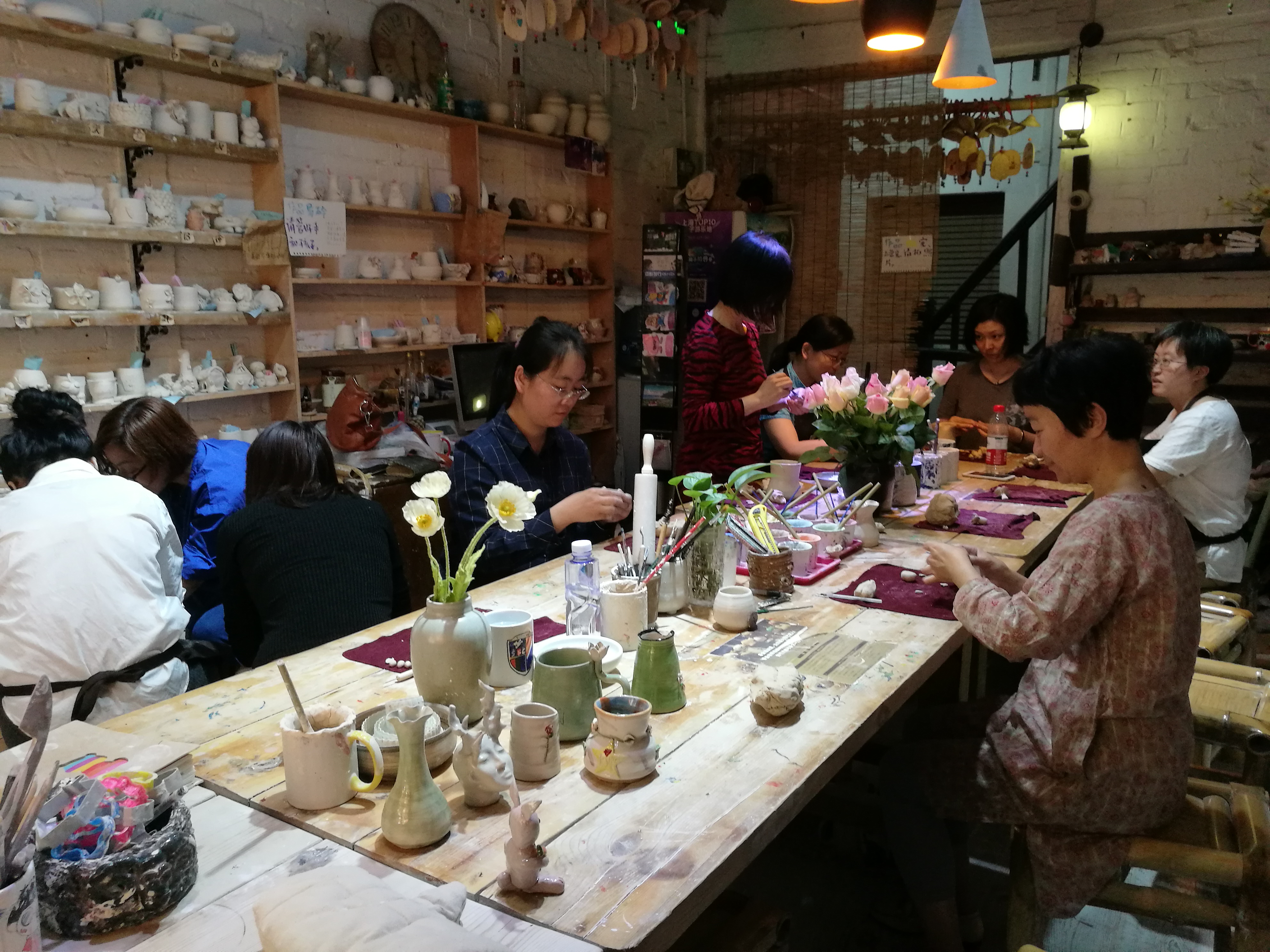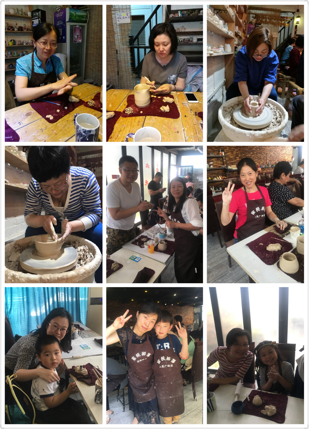 由于报名老师较多,陶艺活动分为三次进行,前两次活动(5月23日和5月26日)在田子坊安静雅致的“窑民部落陶艺陶吧”进行,第三次活动(6月4日)在人民广场店露天“窑民部落陶艺陶吧”进行,活动过程中,大家认真地制作着自己心中唯美灵动的陶艺品,陶艺是具有情感的艺术品,是理性之美和感性之美的结合体,体现了特殊自然情怀和禅境意蕴,激发人们内心对自然与生命的赞美之情。每位老师通过自己的探索尝试,都制作出各具特色的精美陶艺作品留念。活动中有的教职工带上自己的亲人孩子一起参入这个陶艺大家庭中,体验陶艺之美的同时,交流编织起大家的感情之网,团结协作的种子深种,相信学院教师之间的感情和协作力都有了升华。