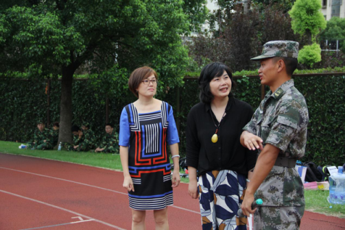钱海红书记与教官交谈