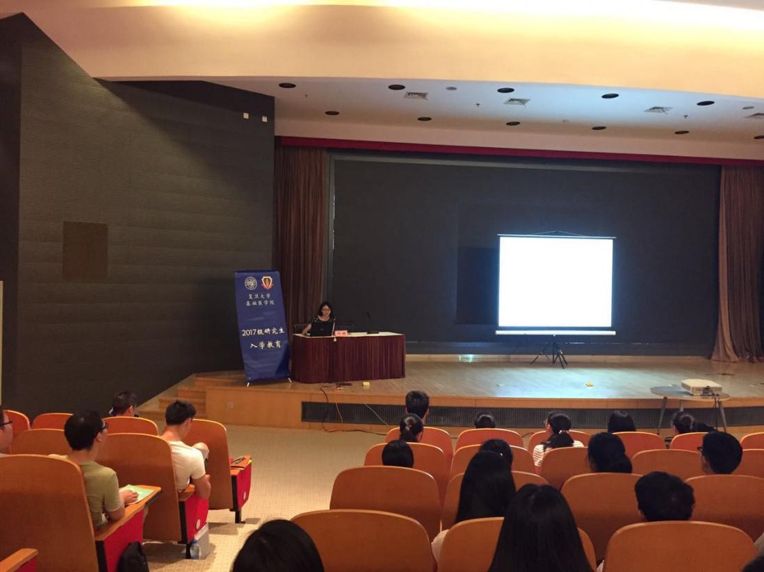 复旦大学上海医学院(原上海医科大学)创建于1927年,创立时名为国立第四中山大学医学院,是中国人创办的第一所国立大学医学院,颜福庆出任首任院长。2000年,上海医科大学和复旦大学合并办学,组建成为新的复旦大学。2012年,新的上海医学院成立。今年在复旦大学上海医学院成立90年之际迎来了近1600名2017级医学研究生新生。9月5日上午,基础医学院2017级研究生入学教育在明道楼二楼报告厅隆重举行。来自五湖四海的88名硕士研究生和87名博士研究生新生参加了入学教育。本次入学教育旨在入学前让新生对学校各项要求等有大致了解。研工组张镭老师、学院研究生教育办公室史薇老师、新生辅导员刘艇老师、常琳老师等代表出席了本次大会。