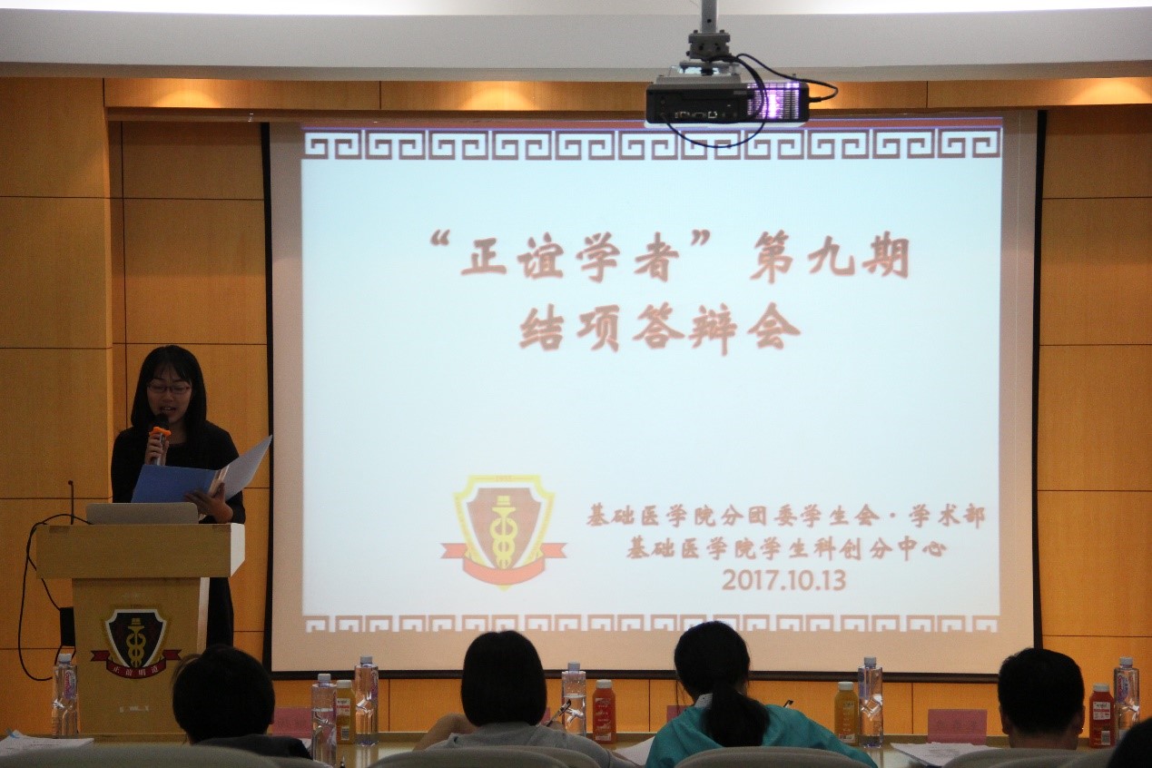 2017年10月13日晚,基础医学院学生学术科技创新项目“正谊学者”结项答辩会在枫林校区东一号楼二楼报告厅顺利举行,此次答辩会既展示出了基础医学院学子笃行求知、探索求新的学术精神与辛勤努力的累累硕果,也反映了医学院师生深切的人文关怀。