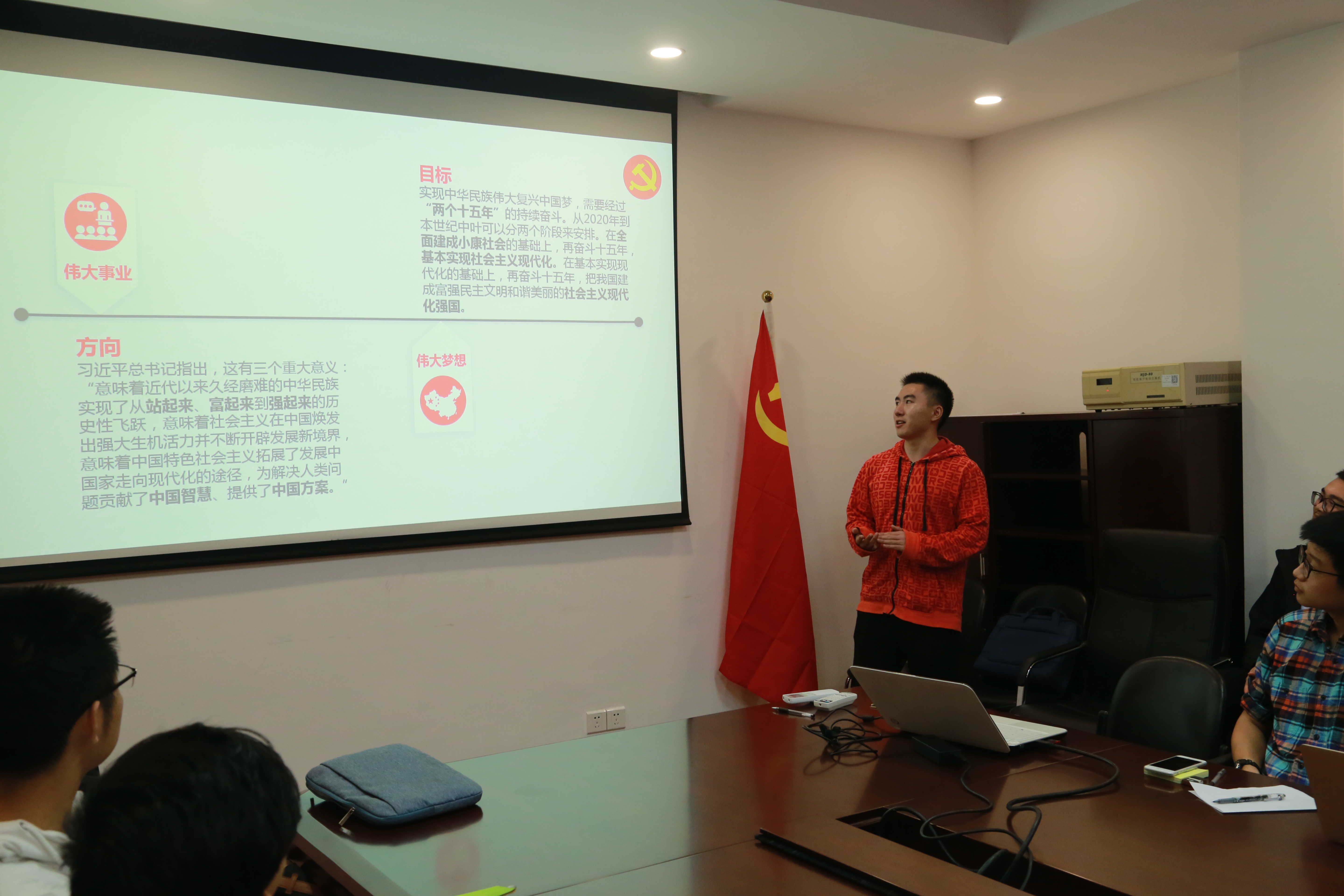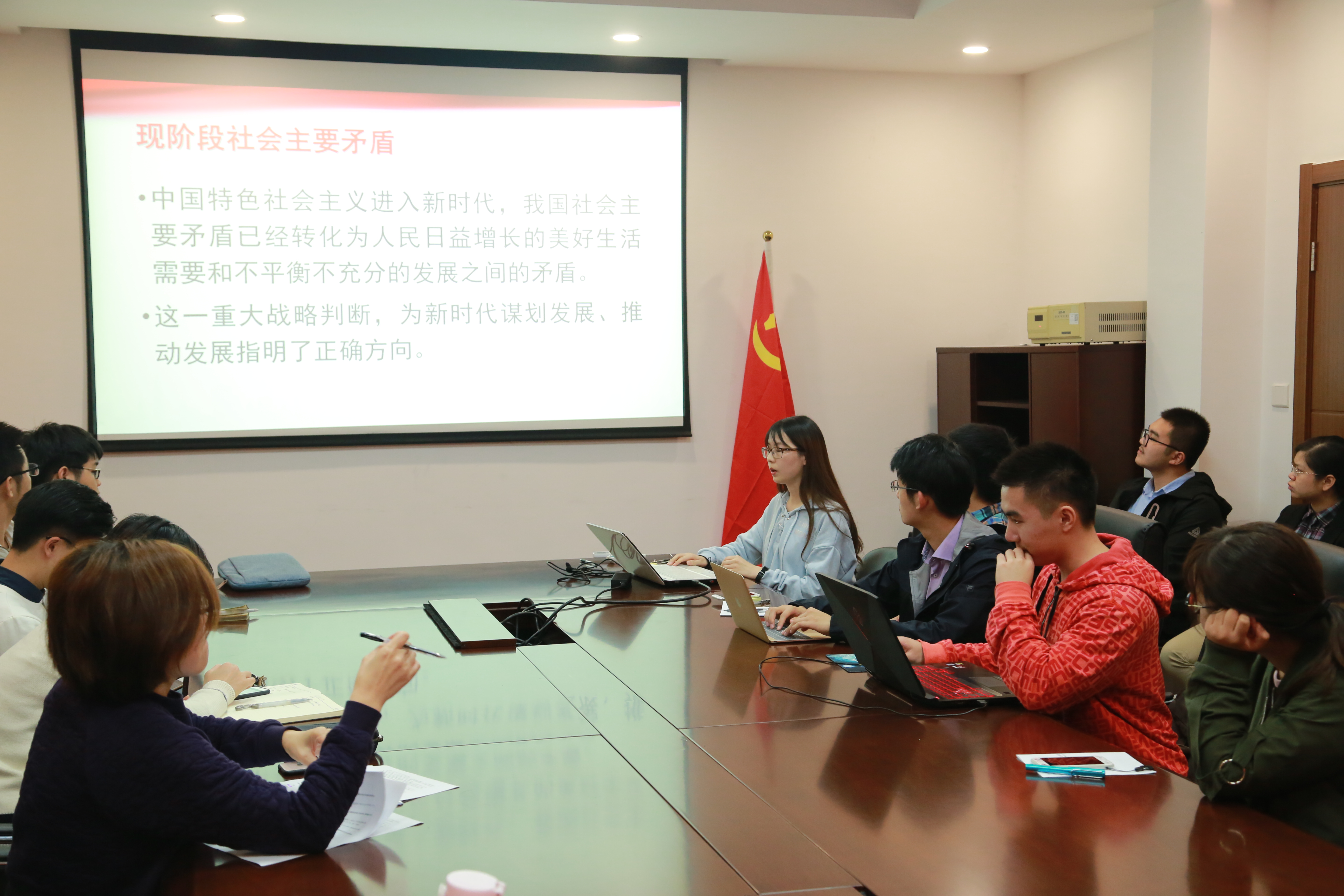 观看完视频后,来自不同支部的三名预备党员,就自己学习十九大报告和十九大精神的心得进行了分享和展示。来自2015级临床医学(五年制)的陈一凡同学向大家阐述了新时代中国特色社会主义思想的精神实质和丰富内涵;来自2013级临床医学(八年制)的毛润烨同学则联系了习近平总书记“7·26”重要讲话,点明了“伟大斗争、伟大工程、伟大事业、伟大梦想”蕴含的理论和实践要求。来自2014级临床医学(八年制)的马丽云同学则以我国社会主要矛盾的更迭为主线,分析了新时代新矛盾的深刻历史意义,并就生态文明建设和“美丽中国”目标发表了独到见解。