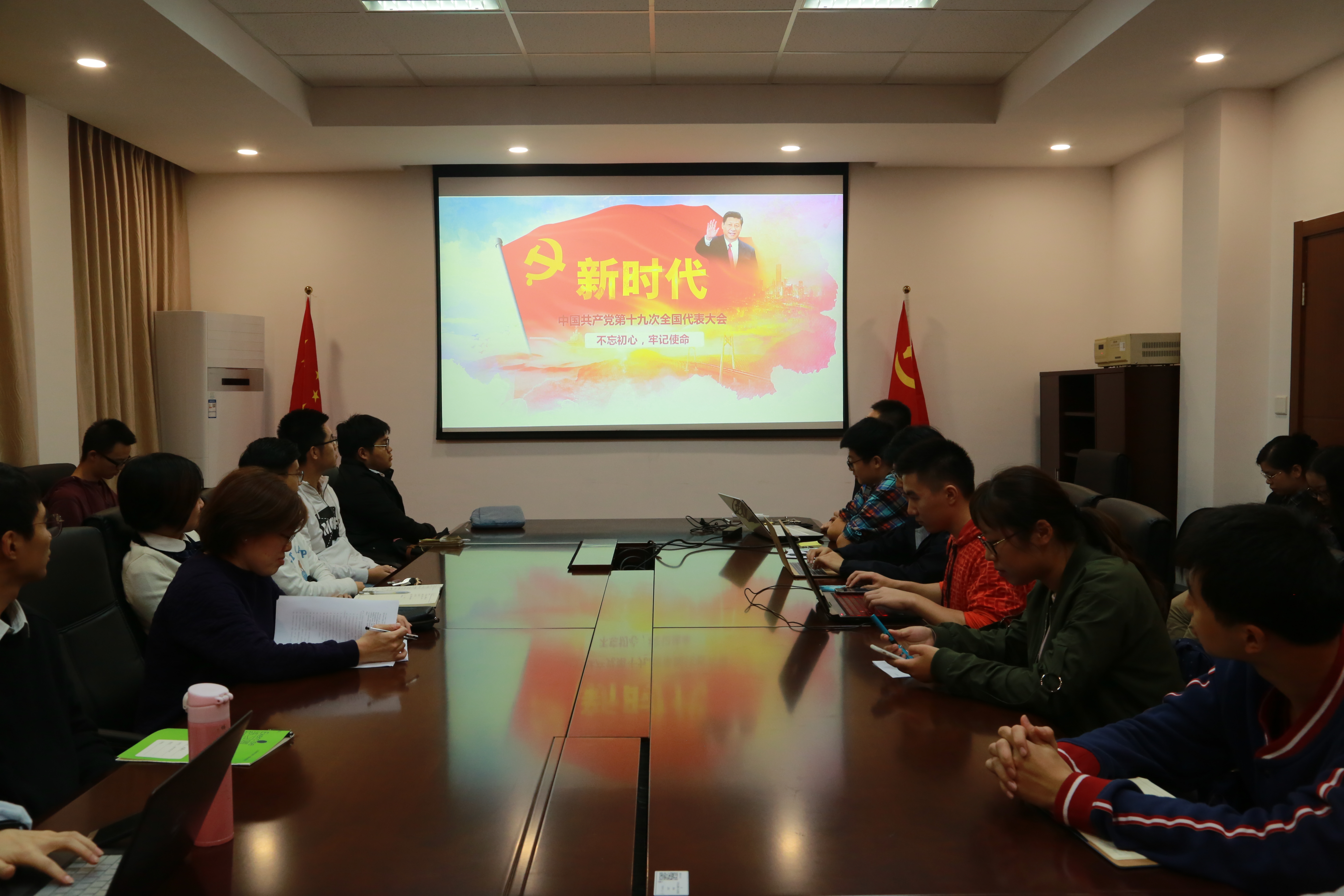 座谈会于18时30分正式开始。首先,全体与会党员共同观看了《领航》和《中国的红色梦想》两段视频。视频带领同志们系统回顾了中国共产党的发展历程,生动描绘了党的十八大以来,中国共产党锐意进取、深化改革的魄力,依靠人民、引领人民建设国家的成果。五年以来,以习近平同志为核心的党中央领航中国,面对深刻变化的世情、国情、党情,将中国特色社会主义理论和实践不断推向新境界。党的十九大在全面建成小康社会决胜阶段、中国特色社会主义进入新时代的关键时期召开,意义深远,使命重大。