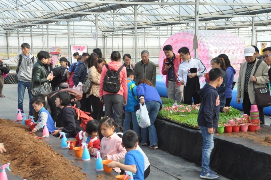 当教师们到达菊花园后,立即分兵两路,即亲子活动和观赏菊花。在亲子活动馆,有些孩子亲手做植物DIY、手工DIY;有的在水上滚筒玩乐和捞鱼;更有甚者与父母一起采摘菊花和烘焙保藏。父母与孩子们的互动中洋溢出浓浓的舐犊之爱,孩子那一张张的笑脸如同园中怒放的菊花,美丽动人。