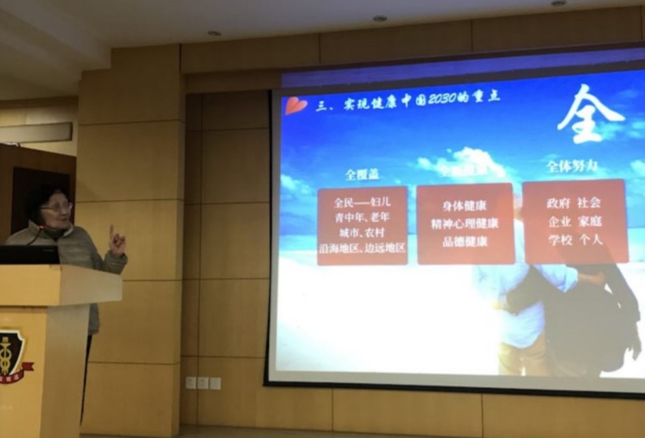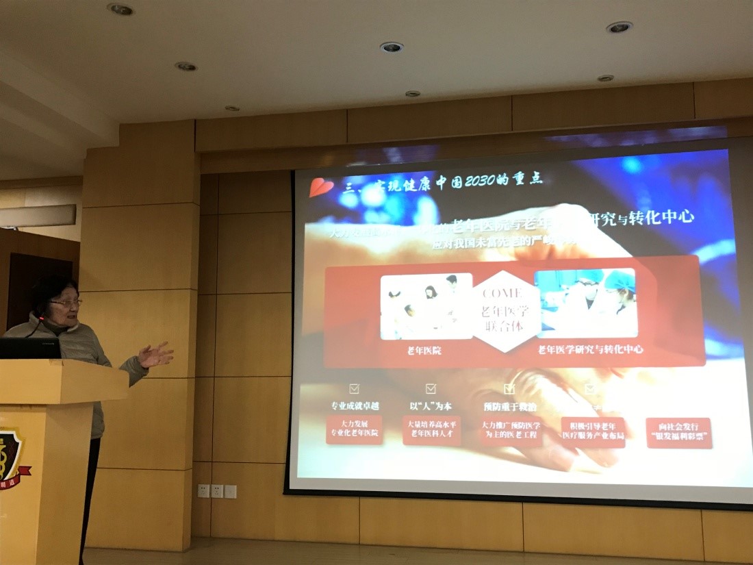 11月30日中午,病原生物学系的全体党员在东一号楼二楼报告厅开展学习党的十九大报告专题组织生活会,闻玉梅院士为大家作了题为《健康中国的内涵与责任》的主题报告。