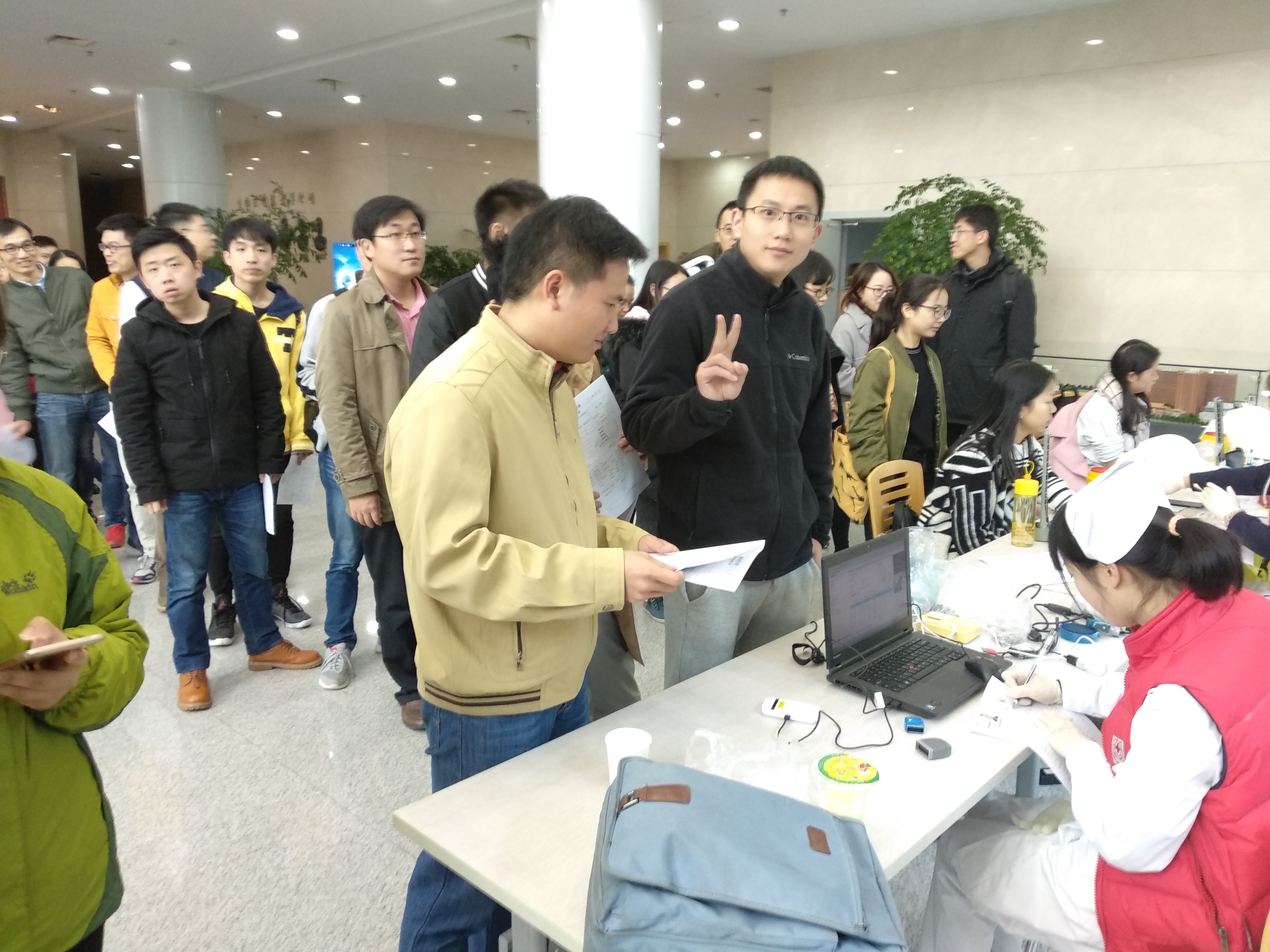 填写表格、接受体检、等待化验结果、献血、下台休息、发放献血证和慰问品……所有的工作有条不紊地展开,明道楼一楼大厅里里忙碌而又有序。 虽然今天有些许的寒冷,想着自己的一份爱心能够为将来拯救生命做贡献便是最大的安慰。为了不曾见过的陌生人,默默的献上自己的爱心,多么令人感动和钦佩。有同学这样说:“我是A型血,现在A型血紧缺,所以我就来了。”