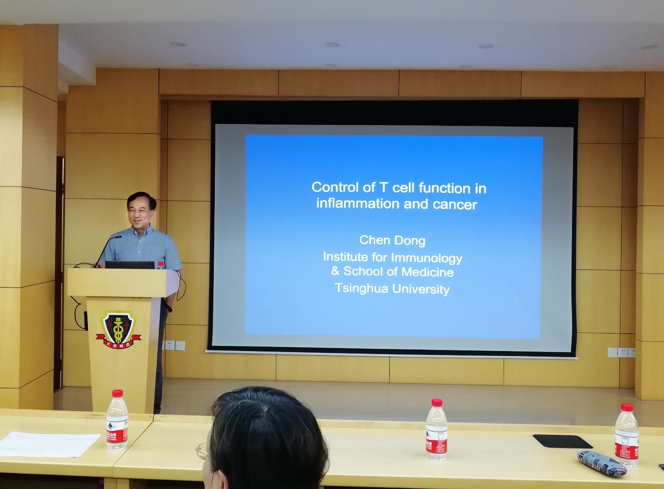 随后,讲座正式开始。董教授首先概括介绍了自身免疫过程中T细胞的调控机理,接着详细讲解了TRIM28及其与STAT3和RORγt形成的复合体对T细胞的调控作用。然后董晨教授讲述了免疫治疗肿瘤的研究现状以及临床应用情况。免疫治疗是继手术、放疗、化疗之后针对肿瘤的一种新的治疗手段。最后董晨教授给大家分享了一项新的研究成果,研究结果发现表达于多种肿瘤组织的B7S1与PD-1对CD8+T细胞具有协同抑制作用,而且联合阻断B7S1和PD-1可以协同抑制肿瘤的生长。这项研究成果发表在2018年Immunity期刊上。