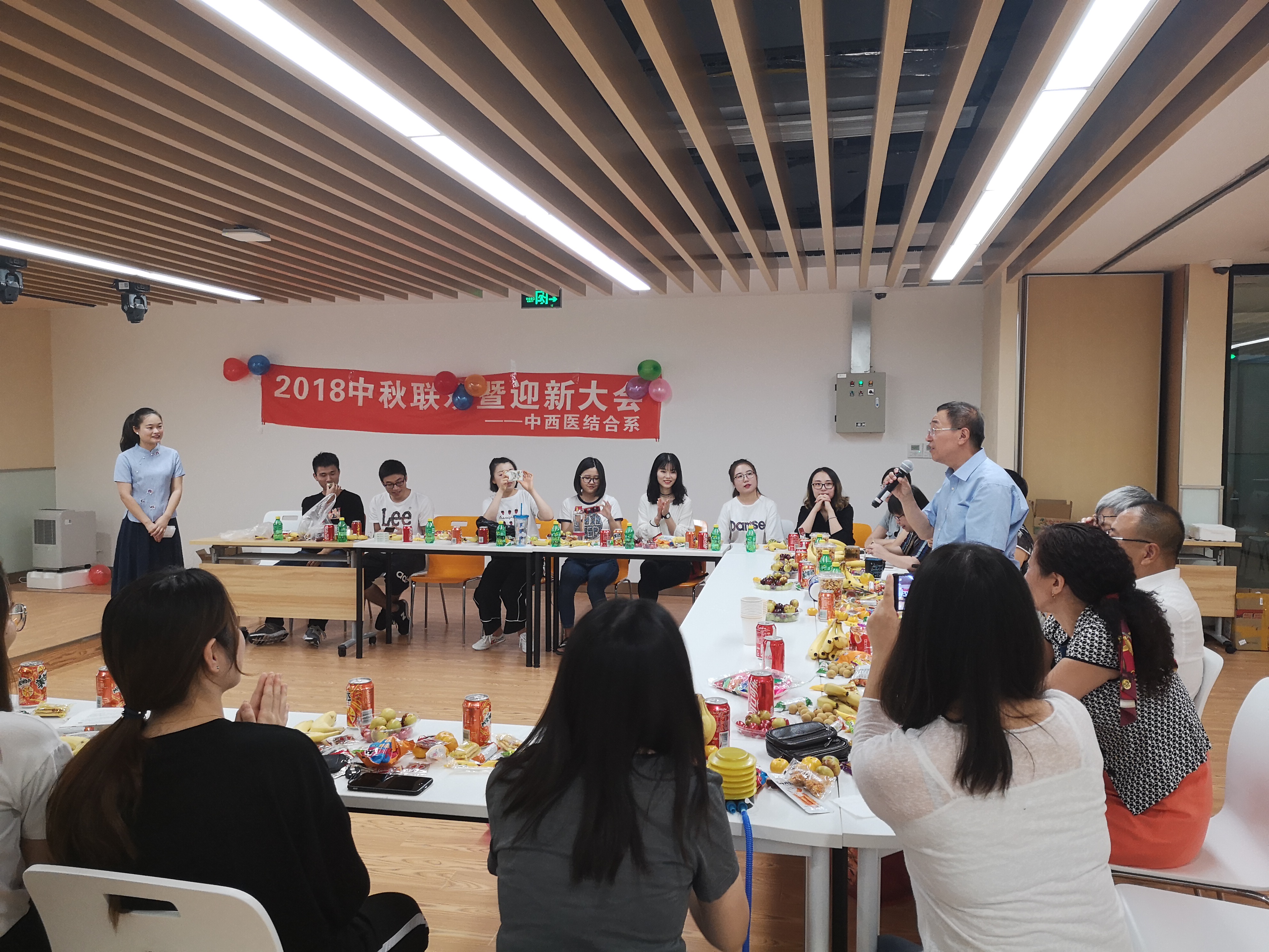 新学期开始了,新的同学也到来了,共有8位新同学加入了中西医结合的大家庭。系里一年一度的传统大戏——中秋联欢迎新大会于2018年9月28日隆重举行。师生们欢聚一堂,大家青春洋溢,活力四射,欢声笑语,载歌载舞,共同欢迎新同学的加入,欢度中秋国庆佳节。