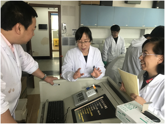 课后中心副主任、功能学科实验课程负责人严钰锋老师热情接待并向来访嘉宾详细介绍了功能实验室的历史发展、运行情况和实验教学工作:近几年来,功能实验室全面完善了实验仪器的配置,申请了多项专利,提高了实验成功率,改善了实验环境,实验器械、药品统一化、规范化管理,并建立了电子档案。在线课程同步推出,学生实行了无纸化作业。虚拟仿真实验平台已经具有国内先进的水平。对此来访嘉宾对我们的工作予以了肯定,并提出医学实验教学工作中所遇到的相关疑问,严老师一一解答。