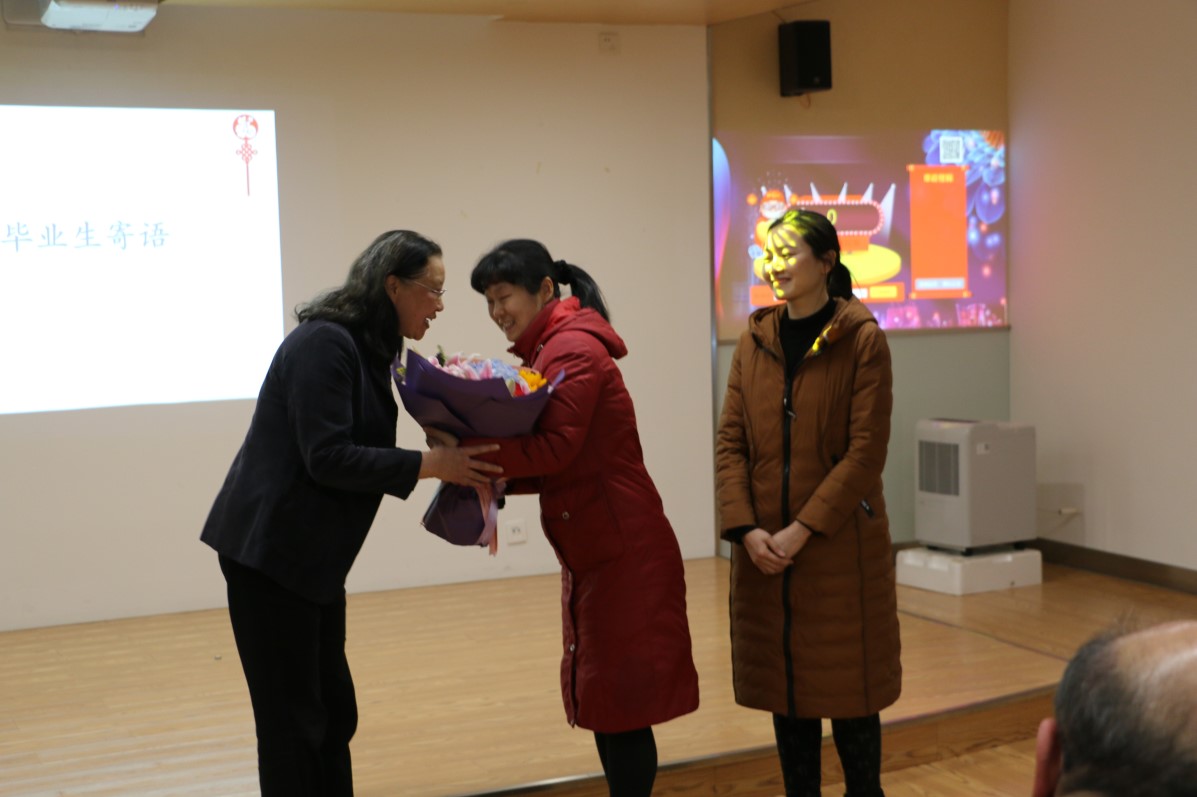 毕业生寄语环节更是让众多导师感动不已。其中有些是刚刚毕业,有些已经毕业从事工作数十载,有些是导师的开门弟子,种种寄语都表达了对生理与病理生理学系这个大家庭的想念与热爱。这是一段可以传承的师生情,同窗同门情谊,任时间飞逝,尽管容颜已变,而人心永恒。尤为值得一提的是,沈霖霖教授即将离开接近40年的教师岗位,她桃李满天下,一直在工作中一丝不苟,教学严谨,科研求真的态度让学生记忆深刻,她的学生也是百忙之中给沈老师送了祝福,每位研究生都录了一段1-2分钟的祝福,系里把视频整合在一起播放,给了沈老师一个大大的惊喜。更有两位已经毕业的研究生亲自来到现场,为沈老师送上感恩的花束。