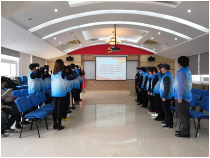在简要的培训后,党员重温入党宣誓仪式,不忘初心,践行志愿服务。