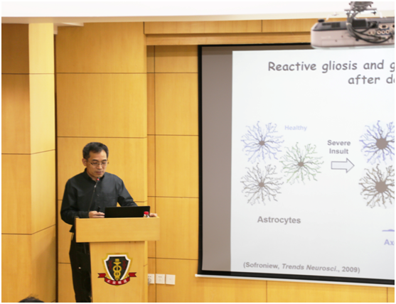 张春立教授主要从事成体神经干细胞及神经再生的分子和细胞学机制的研究,近年来在中枢神经系统神经再生及细胞重编程等领域取得一系列显著的工作。此次报告中,张春立教授引经据典,抛出成体神经干细胞神经发生问题,随后从星形胶质细胞在体内向神经元重编程、NG2胶质细胞在体内向神经元重编程、成熟神经元在体内的表型重组三个方面介绍其团队所取得的重要工作进展。学术报告结束后,张春立教授与在座师生进行了互动,师生们就神经发生关键蛋白标记因子持续表达分布情况等相关问题与张春立教授展开了讨论。
