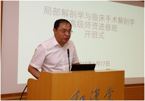 6月17日,新时代首届全国局部解剖学与临床手术解剖学高级师资进修班开班仪式在复旦大学基础医学院举行。中国解剖学会和上海市兄弟医学高校解剖学系领导以及高师班22位学员和我院解剖与组织胚胎学系部分骨干老师出席开班式。
