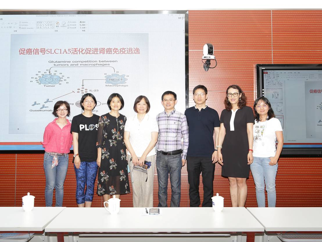 徐洁杰教授围绕肿瘤免疫调节与免疫耐受方向,深入研究肿瘤细胞促癌信号活化促进肿瘤免疫逃逸形成的细胞和分子机制。近年来以第一作者和通讯作者在Gastroenterology、Gut、Hepatology等肿瘤学领域国际权威期刊发表SCI论文48篇。本次报告中,徐教授主要分享对谷氨酰胺嗜好的肾癌患者免疫逃逸形成的细胞和分子机制研究。肾癌细胞通过和巨噬细胞竞争摄取谷氨酰胺从而促进巨噬细胞分泌IL-23,从而促进肾癌的进展和转移,提出靶向IL-23重激活抗肿瘤免疫应答可能为临床治疗肾癌提供新的免疫治疗方法。