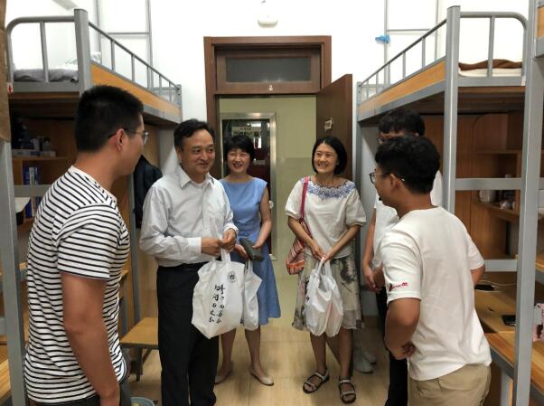 副院长黄志力、副书记姜宴、生化系支部书记潘东宁走访男生宿舍楼