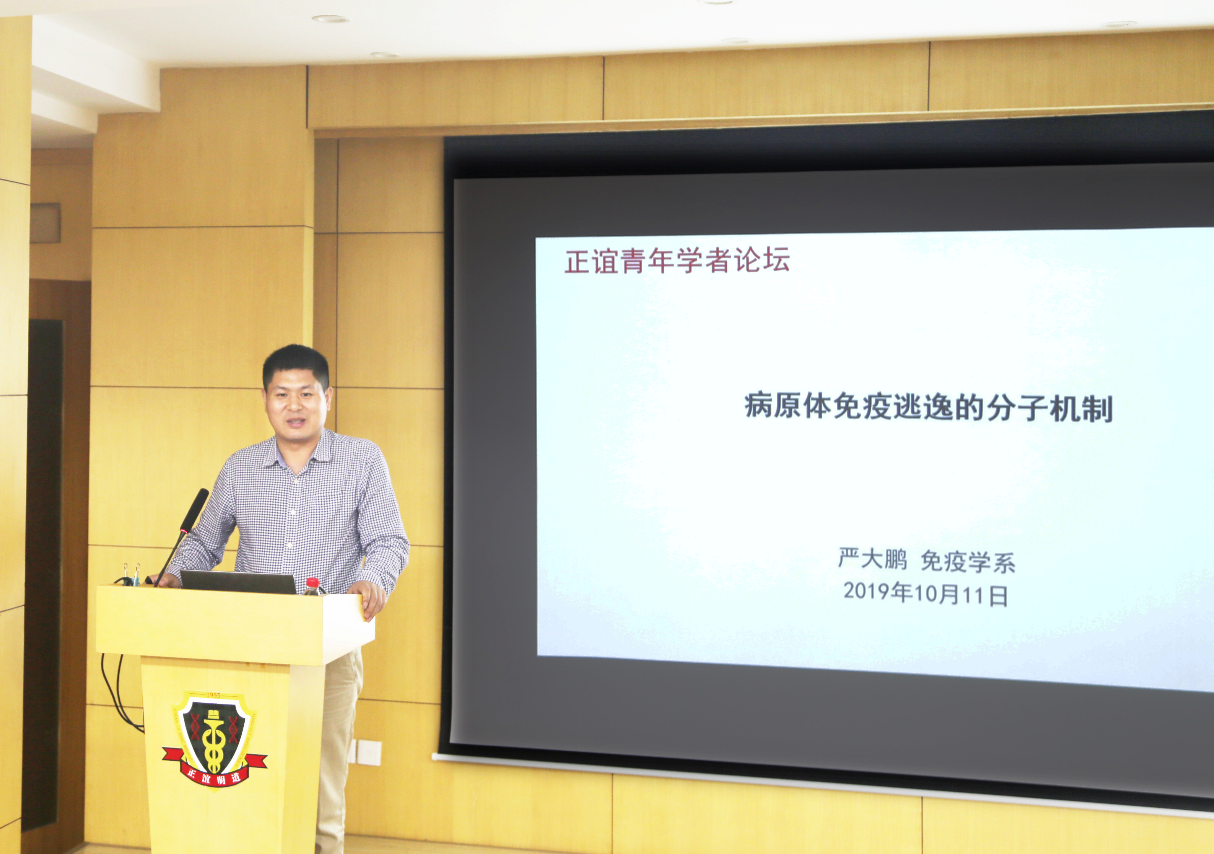10月11日中午,第五期“正谊青年学者论坛”在基础医学院东一号楼233报告厅举行。复旦大学附属妇产科医院杜美蓉研究员和复旦大学基础医学院严大鹏青年研究员作为本期论坛的特邀嘉宾,分别作了题为“母胎免疫调节机制及其临床转化”和“病原体免疫逃逸的分子机制”的专题学术报告。此次论坛由基础医学院党永军研究员主持,来自各院系和附属医院的师生前来聆听学习。