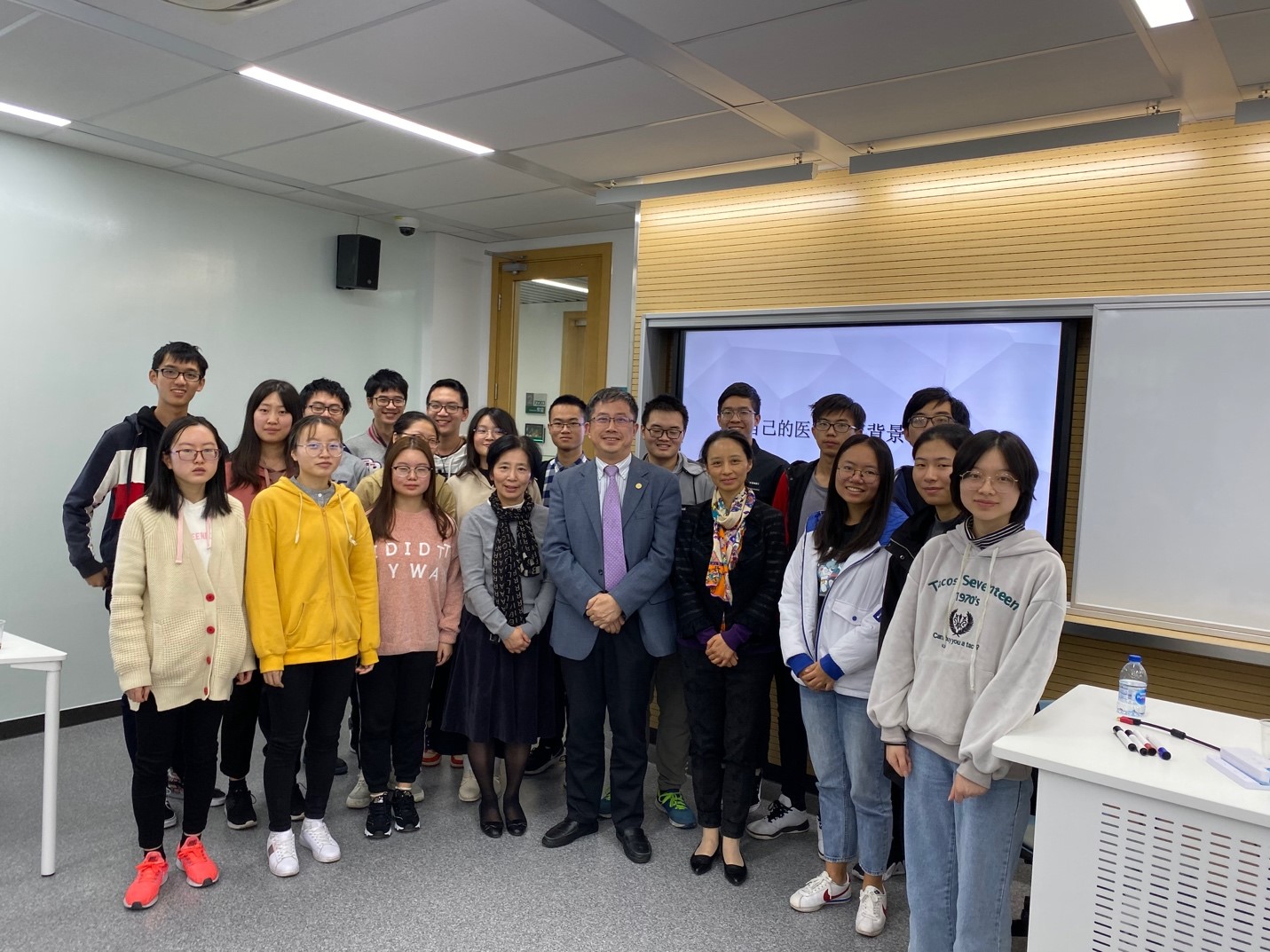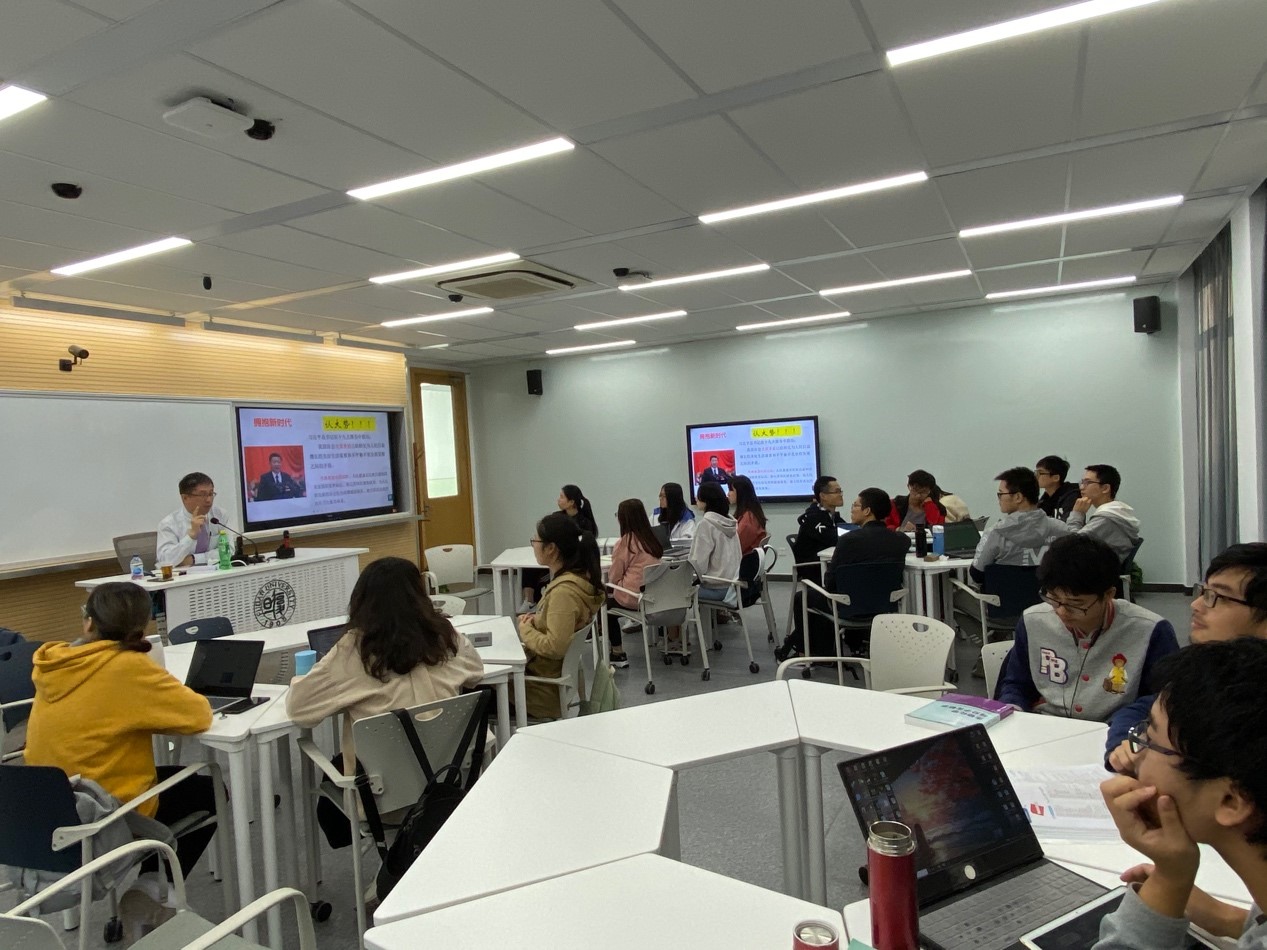 11月15日上午, 《基础医学导论》课程负责人程训佳教授邀请了复旦大学附属中山医院临床医学研究院程韵枫教授和中山医院副院长原复旦大学外事处处长朱畴文教授以研讨的形式,给2018级基础医学专业的同学上了一堂别开生面的思政课程。