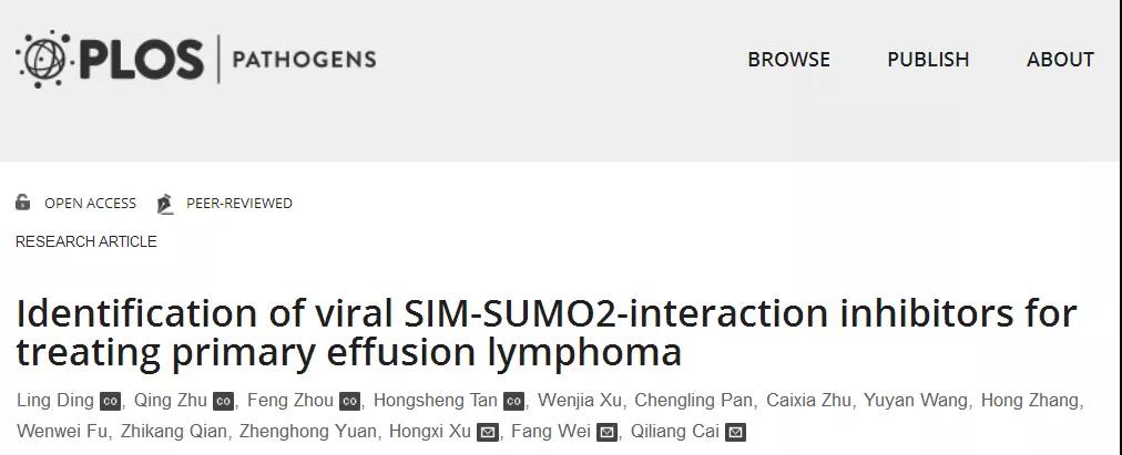 3. Gu F, Wang C, Wei F, Wang Y, Zhu Q, Ding L, Xu W, Zhu C, Cai C, Qian Z, Yuan Z, Robertson E, Cai Q. STAT6 degradation and ubiquitylated TRIML2 are essential for activation of human oncogenic herpesvirus. PLoS Pathogens. 2018 Dec 10; 14(12):e1007416.