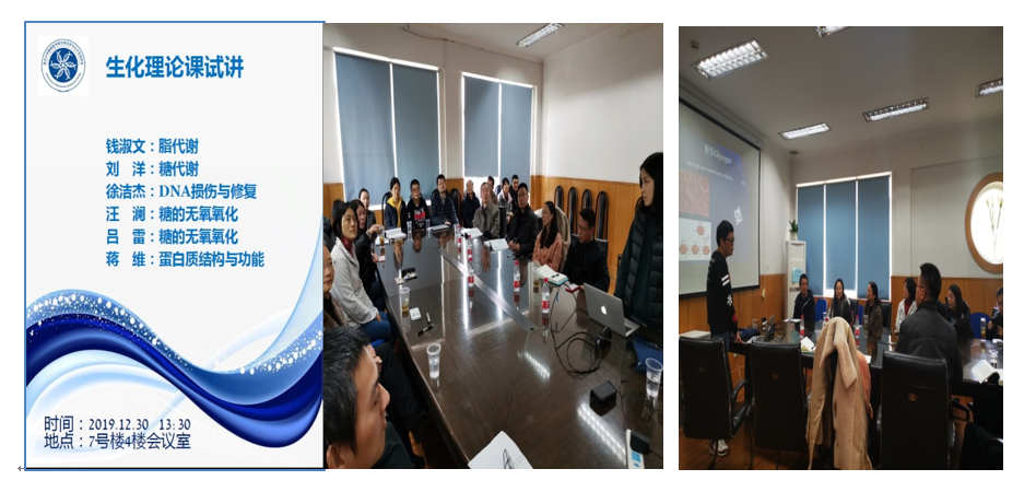 为帮助新任课教师更好地走上讲台,快速顺利进入教师角色,进一步提高课堂教学质量和教学水平,加强教学管理,12月30日下午,生物化学与分子生物学系在生化系4楼会议室开展了引进人才新进教师专题试讲活动。本次活动由主管教学的王丽影老师主持,系党支部书记潘东宁教授、教学经验丰富的吴兴中教授、莫炜、黄海艳、李增霞、徐莺莺、郭亮老师及系里的各位青年教师及引进人才出席。