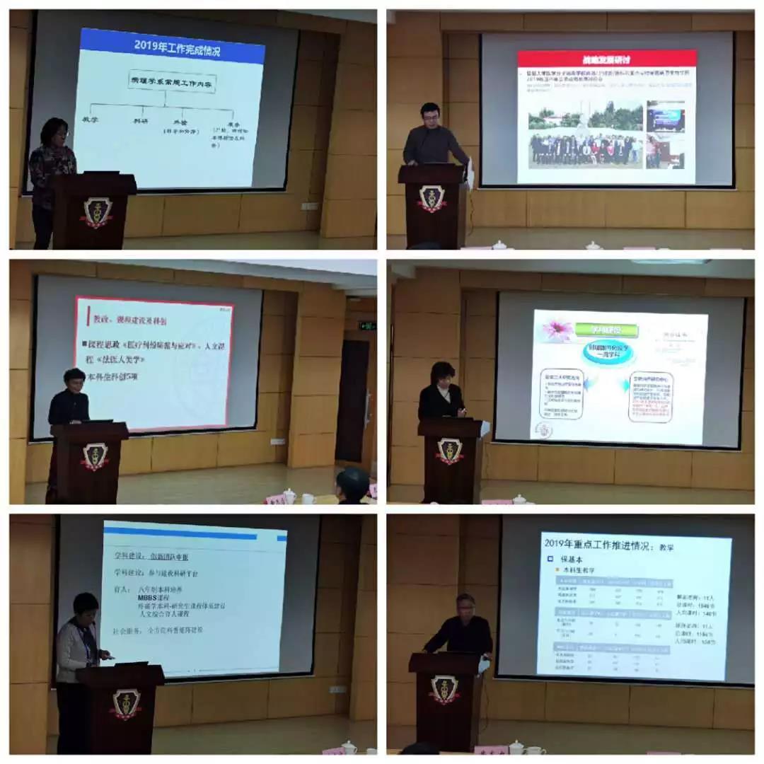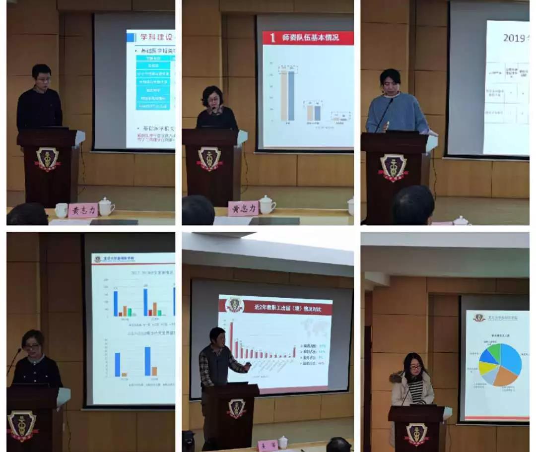 1月11日上午, 基础医学院在东一号楼二楼西侧报告厅举行2019年工作总结会,学院党政班子成员、系主任、支部书记、机关各办主任出席,学院党委书记许晓茵主持会议。