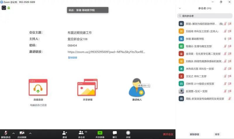 5月27日上午,基础医学院学生党总支通过在线会议的形式,进行了“四史”学习的启动仪式。由党总支书记张镭向各学生支部布置了“四史”学习的要求,随后各支部书记也针对学生党员的特点,开展了如果进一步扎实落实“四史”学习的讨论。学生党支部将结合当前疫情期间封闭式校园管理的特点,开展线下和线上联动的系列活动,使“四史”学习入心入脑。