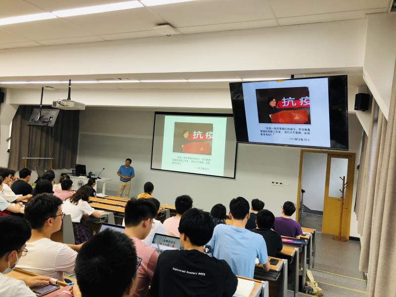 周老师以2020年9月8日习近平总书记在“全国抗击新冠肺炎疫情表彰大会”的讲话作为组织胚胎学第一课的首张幻灯片,接着展示了包括闻玉梅院士、张文宏教授、“疾控女侠”吴凡教授及各个“战疫”一线的上医人,他们体现了“为人群服务”的上医精神,是我们上医人的骄傲!在这场没有硝烟的战争中,上医人的热血与无私挥洒在抗疫前线,为各位同学树立了楷模,彰显担当风范。
