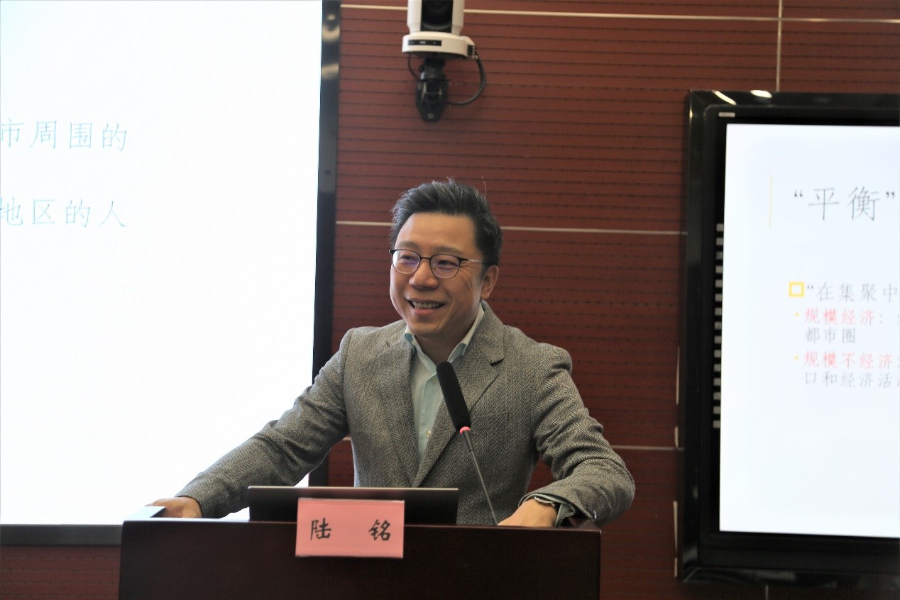 为深入学习贯彻党的十九届五中全会精神,12月8日下午,复旦大学基础医学院举行学院党委中心组扩大学习暨教职工政治理论学习专题会议,邀请上海交通大学安泰经济与管理学院特聘教授、中国发展研究院执行院长、上海市政协委员陆铭教授为全体教职工做《新发展阶段的城乡和区域格局》专题报告。 报告会由学院党委书记许晓茵主持 学院党政领导、全体教职工通过 线上和线下相结合的方式参加了本次学习 陆铭教授的主要研究方向为劳动经济学、城乡和区域发展、社会经济学,2020年8月,作为专家代表参加习近平总书记主持召开的经济社会领域专家座谈会并发言。 作为复旦的校友,陆铭教授专场报告的氛围显得格外亲切。陆铭教授从“十四五”和新发展阶段谈起,结合经典的案例,重点围绕城乡和区域发展的结构调整空间、经济双循环下的城乡和区域发展、城乡和区域发展的政策建议三个方面进行了阐释。 城乡和区域发展的结构调整空间 陆铭教授首先提出我国的城市化和城市发展存在一定的滞后的现象,城市化率与发达国家相比较低、排名前30位的都市圈规模不够大等问题,并相应指出可以从加强人口聚集、校正土地和住房空间错配、改善低密度城市建设模式和户籍制度等方面予以解决的建议。 经济双循环下的城乡和区域发展 在经济双循环下的城乡和区域发展方面,陆铭教授强调要推动形成以国内大循环为主体、国内国际双循环相互促进的新发展格局,新发展格局决不是封闭的国内循环,而是开放的国内国际双循环。促进城乡和区域发展的空间结构调整,有利于形成国内市场主导国民经济循环,释放经济增长的内需潜力,形成需求牵引供给、供给创造需求的更高水平动态平衡。 城乡和区域发展的政策建议 最后,陆铭教授认为,人口城市化,并向中心城市周围的都市圈以及沿海地区集聚,是城乡和区域发展的客观规律,加快实施以中心城市为带动的都市圈和城市群发展战略,促进各类生产要素合理流动和高效集聚,要在在集聚中走向平衡,在发展中营造平衡。同时在强化都市圈的增长极作用,要深化户籍制度改革,加强流动人口子女的教育投资,增强土地和住房管理的灵活性,建设用地指标跨地区配置,公共服务和基础设施的供给优化等方面提出了建议。