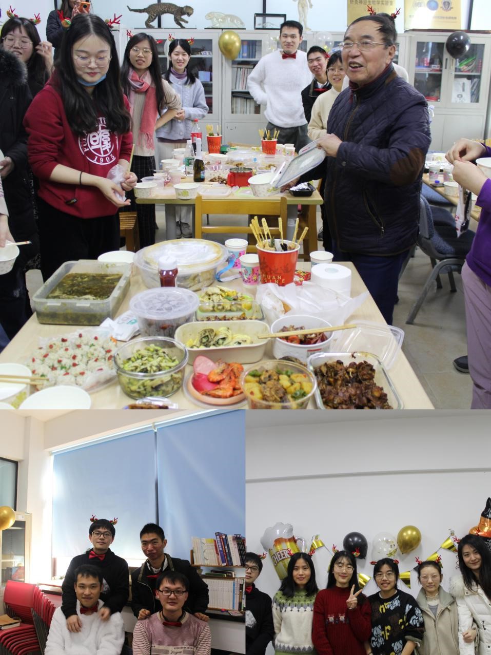 本次联欢会从传统师生聚餐活动中拉开帷幕。雪菜黄鱼汤、蒲烧鳗鱼、火腿松露羊乳饼、黄焖栗子鸡、可乐鸡翅、秘制胡辣汤、珍珠丸子、本帮熏鱼、烤羊排、铁锅㸆大鹅、大盘鸡、韩式鸡蛋卷……伴着音乐,老师们陆续介绍并端上自己亲手烹饪的菜肴,大家一一仔细品尝,并不断发出赞叹声,让远在异地求学的同学们感受到家的温馨与老师们的关爱。
