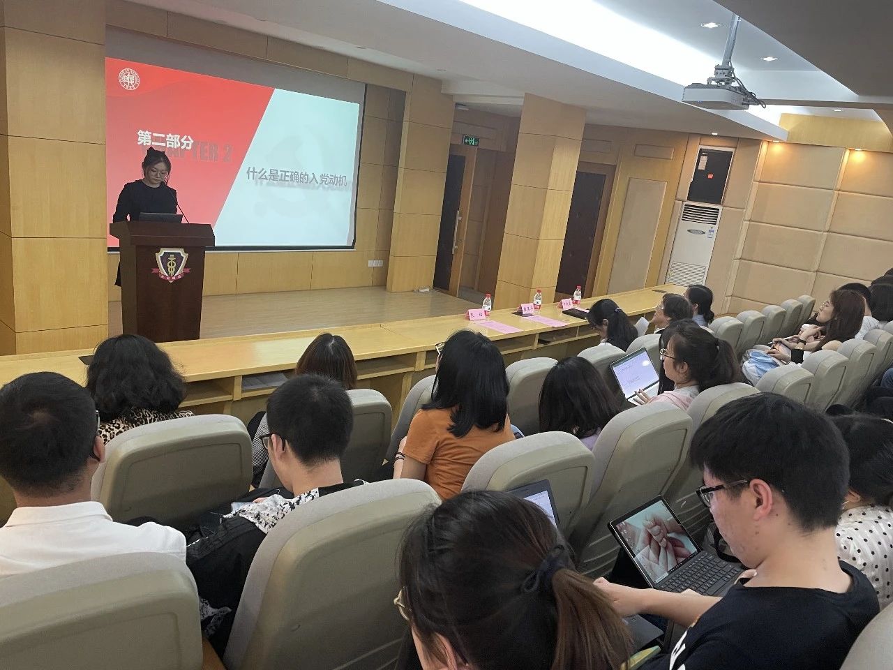 她首先讲到自己从小就受到身边的党员以及诸多影视作品中红色思想的影响,在初中毕业时,积极响应毛主席“知识青年到农村去、到祖国需要的地方去”的号召,前往黑龙江生产建设兵团参与建设钢铁边防。兵团的工作与生活十分的艰苦,需要自己开垦土地、砌砖建屋,还要参与军事训练。然而正是这些艰难困苦,玉汝于成,兵团的磨练使她坚定了入党的初心。接下来殷莲华老师向学员们讲述了自己如何一步一步走上医学道路,如何与上医结缘,如何在艰苦之中求学,如何在党的指引下为国科研、为国育才。殷莲华老师说,自己虽然已经拥有五十多年的党龄,但仍要不断学习、不断巩固自己的入党初心,做到思想上的入党一生一世。