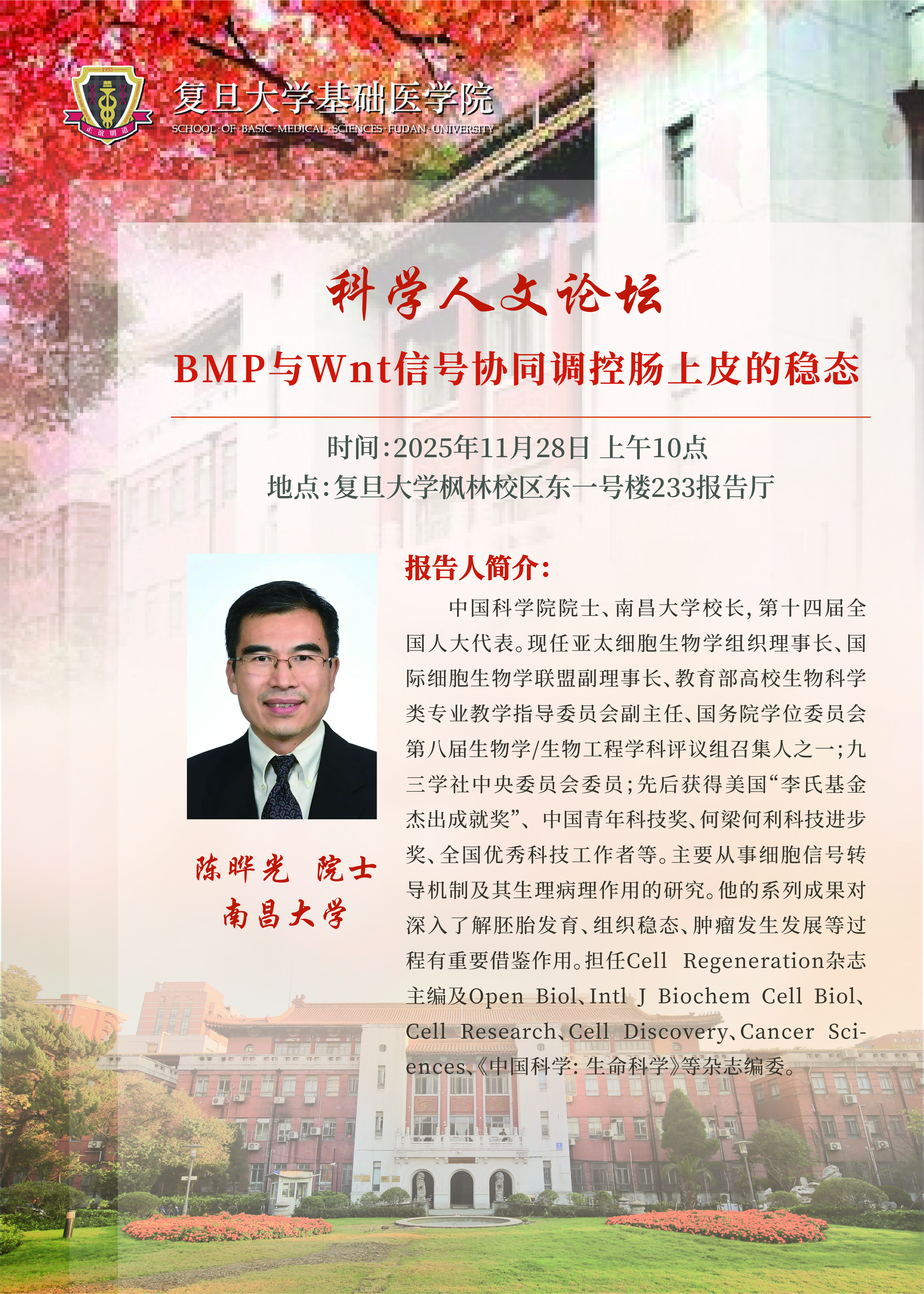 科学人文论坛——BMP与Wnt信号协同调控肠上皮的稳态