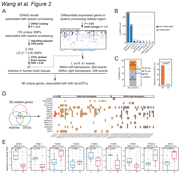 图2 转录组和基因组整合分析发现可能与言语处理相关的基因WNT3