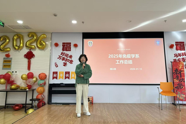 日月开新元,万象启新篇。为全面回顾年度工作成效,凝聚发展共识,迎接新一年的到来,2026年1月15日下午,基础医学院免疫学系在枫林校区西苑报告厅召开年度工作总结大会暨2026年新年师生联欢会。免疫学系系主任储以微,支部书记张伟娟,副主任吕鸣芳、何睿及全体师生齐聚一堂,在总结与欢庆交织的氛围中,共同回望来路、展望新程。